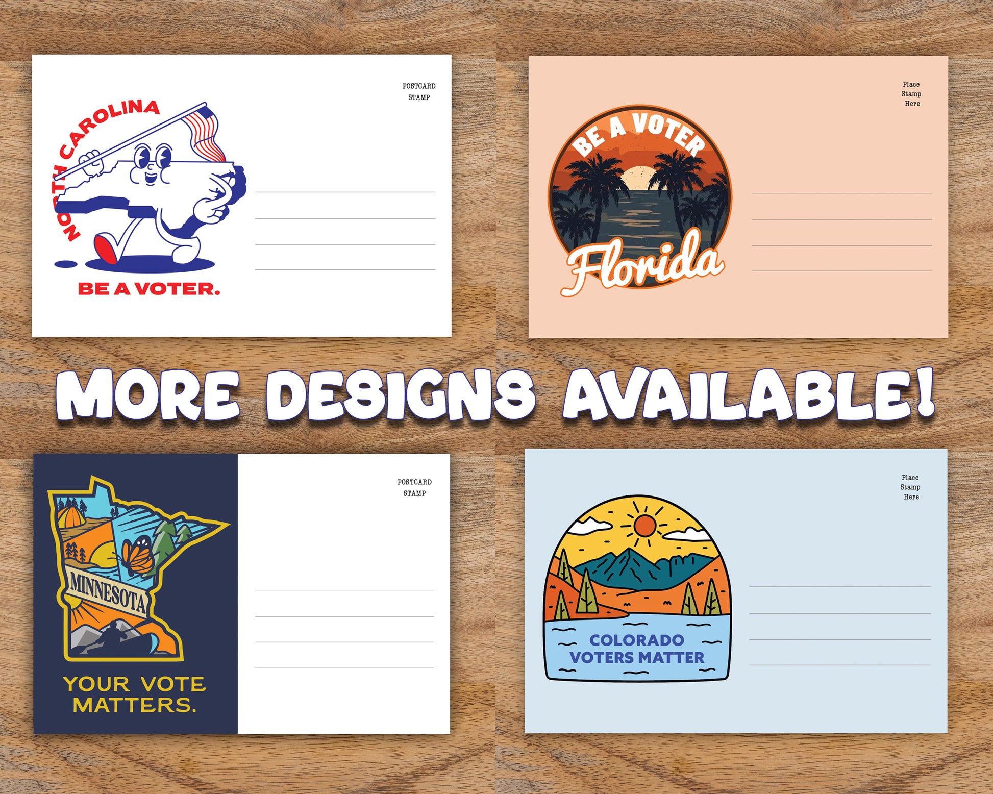 Amplify your civic engagement with our popular postcards, proudly DESIGNED AND MADE IN THE USA. Each is a testament to the power of democracy, reminding recipients that EVERY vote counts, and EVERY vote matters.